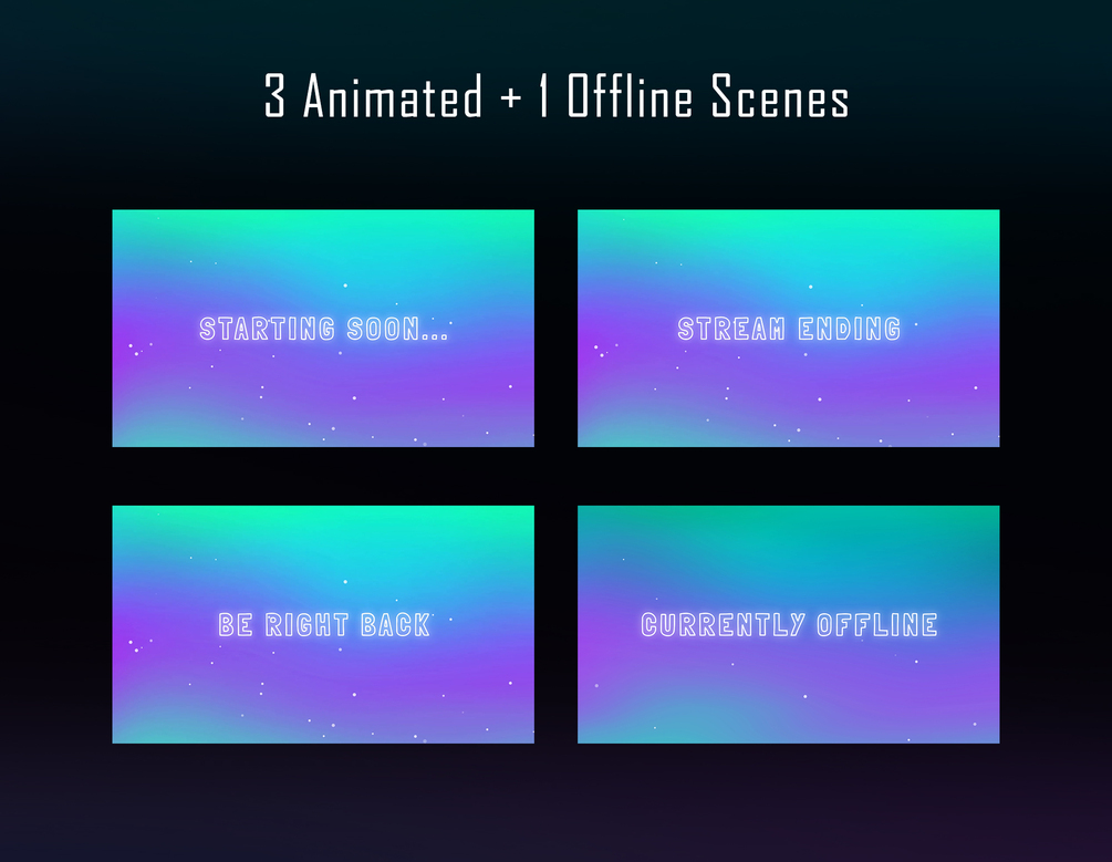 - 3 Animated + 4 Static Twitch Scenes(File Type .MP4 1080p, .JPG):